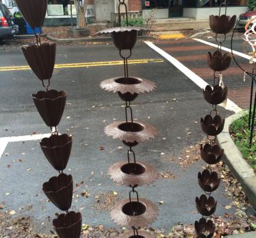 Decorative and functional alternative to traditional downspouts. Steel construction with antique copper finish, 96" long and can be made shorter by removing links between cups.